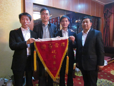 在此次會議上舉行了“三比三看”活動首面流動紅旗頒發(fā)儀式,檸條塔調(diào)運部以“管理規(guī)范、團隊和諧、服務優(yōu)質、環(huán)境整潔”贏得了廣大司機、客戶及礦方的認可和肯定,從而獲得了首面流動紅旗。檸條塔調(diào)運部主管王鵬(。┰跁习l(fā)表了獲獎感言:在廣通神木分公司全力沖刺2012年各項目標任務的關鍵時期,分公司授予檸條塔調(diào)運部的這面綜合管理流動紅旗,不僅激勵了檸條塔調(diào)運部全體員工的工作熱情和工作積極性,更是鞭策了廣通神木分公司的全體員工。我們將以此為契機,立足本職,學習借鑒兄弟部門的先進經(jīng)驗,不斷改進自己的工作方式、方法,力爭使檸條塔調(diào)運部的各項工作能再上新臺階。