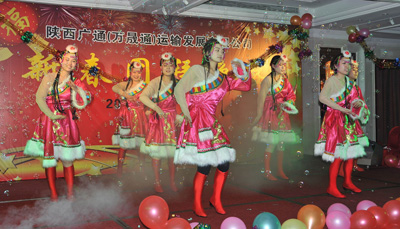 1月11日下午陜西廣通(萬晟通)運(yùn)輸發(fā)展有限公司2012新春團(tuán)拜會(huì)在西安湘鄂情餐廳舉行。陜煤運(yùn)銷集團(tuán)財(cái)務(wù)經(jīng)理和學(xué)謙、運(yùn)輸中心王江、廣通公司董事長任曉鵬、總經(jīng)理沈來萬、廣通、萬晟通各分公司主管以上人員及公司先進(jìn)個(gè)人近百余人參加了此次團(tuán)拜會(huì)。此次團(tuán)拜會(huì)除了招待晚宴外還有精彩的文藝演出與豐富的現(xiàn)場抽獎(jiǎng)活動(dòng)。
